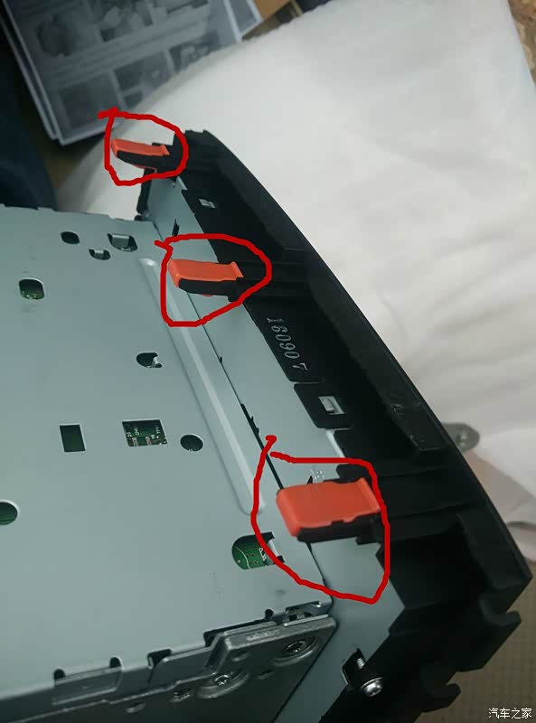 这是原厂机器下面的三个卡子,比较难取下,需要上下慢慢晃动着来。