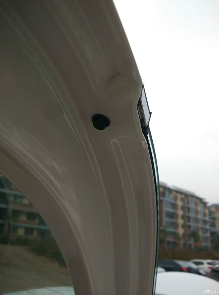 这个图片中黑色的螺丝是固定后尾门外面的镀铬装饰件的,按照倒车摄像头自带的说明书中,要求把这个装饰件取下来。我卸了螺丝,但是没有取下装饰件,发现也能把摄像头装进去。所以,提醒一下,这一步不是必须做,摄像头也能穿进去。(摄像头是从左侧的拍照灯处从外面穿进去的,后面会讲)