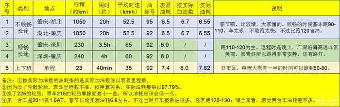 请注意看第1行和第2行,春节来回高速上95和92的油耗一样,而且:加95油的时候,开了ECO节油模式,其余的都关闭了节油模式;返程时载重多出约120kg。
