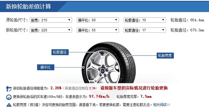 215/60 R16换成 225/55 R17,完全不用担心轮胎轮毂会露出来。