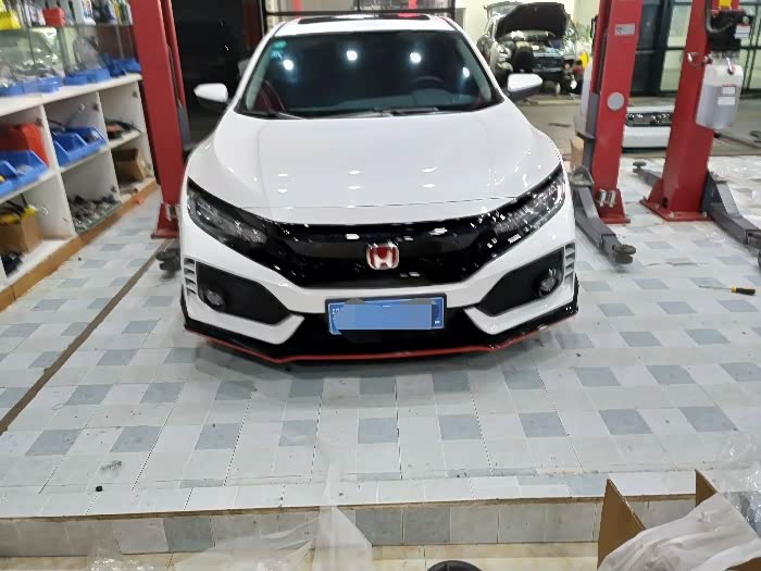 一直感觉原厂前杠太秀气了,所以首先换了TypeR前杠。吻合度还行,细看不了