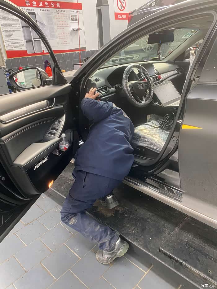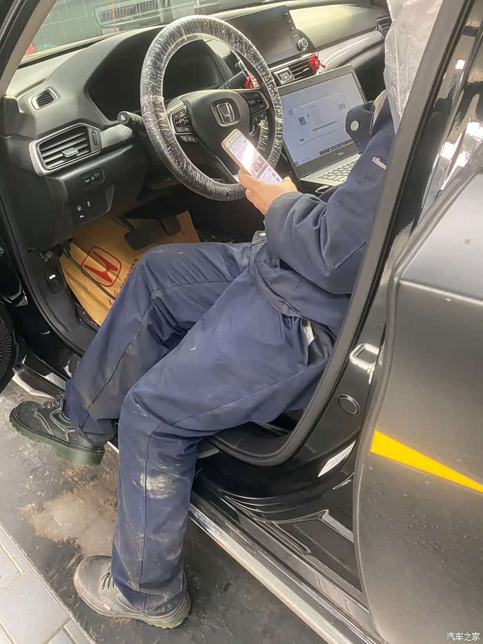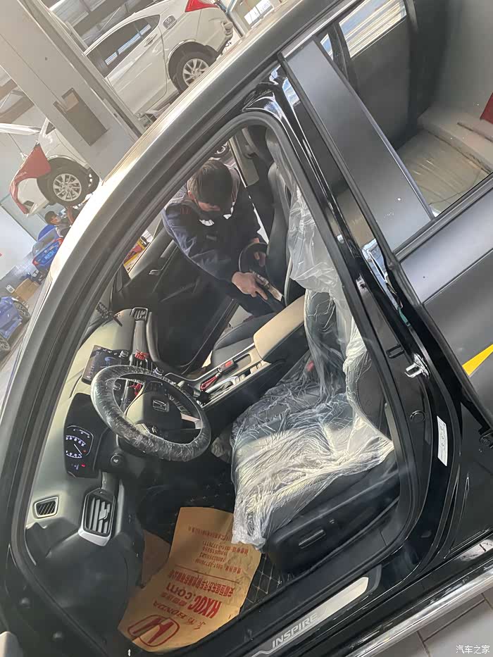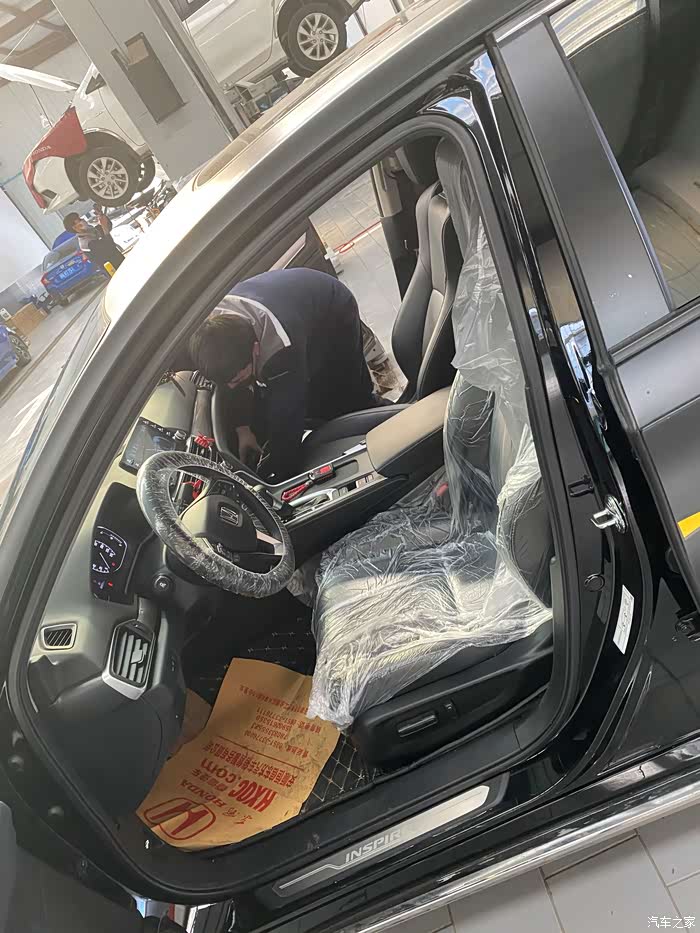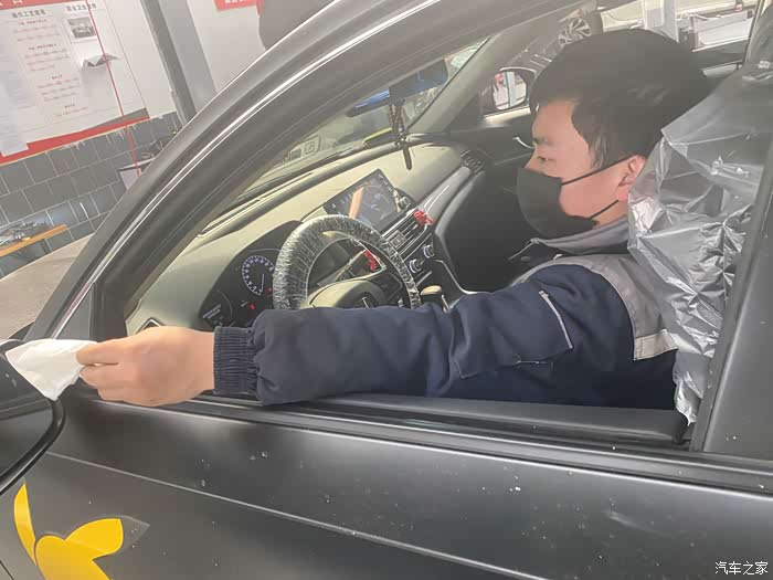车子登记好里程等一些信息后就有师傅过来接手处理,将车内能碰到的地方用保护膜包裹起来,踩脚的地方也放了一个纸垫,感觉防护方面还挺细致。看到自己的爱车被温柔以待,心里当然舒服对吧。
