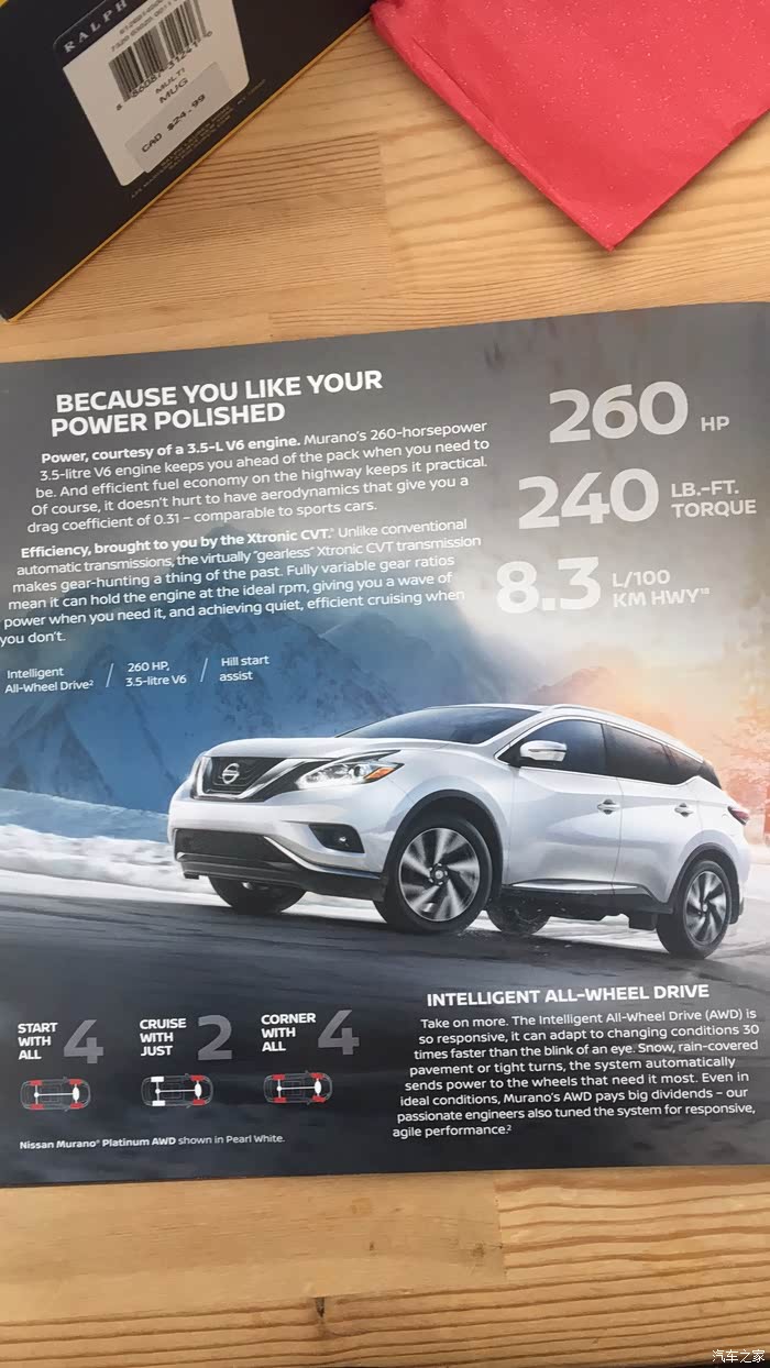 去加拿大多伦多旅游,刚好朋友想换车,便去看了几家日本品牌的店,结果终合来说是日产的楼兰性价比最高,定了一个中高配的版本,4万1加币开价,然后看你是买断还是租车,国外还是比较流行租车的,朋友选择租车,租4年,每月551元加币。车行只送了一套冬天用塑料脚垫,2次免费保养,一次四轮定位,提车时加满一箱油。就这么多优惠。由于本人文笔有限,所以大家看图吧,看和国内有什么区别。3.5的排量,cvt波箱,开起来非常爽!也看了2018款奇骏,由于同样配置,楼兰只比奇骏贵3千多加币,所以毫不犹豫的选择楼兰,奇骏是2.5排量的,多伦多非常多人开奇骏。感觉比crv,或者rav4多很多。cx-5比较少见。原来还想买cx-9的,但是看过实车后放弃了。当然,cx-9也是好车,加速感觉比楼兰快,是2.5T的排量。好了,大家随便看看吧!