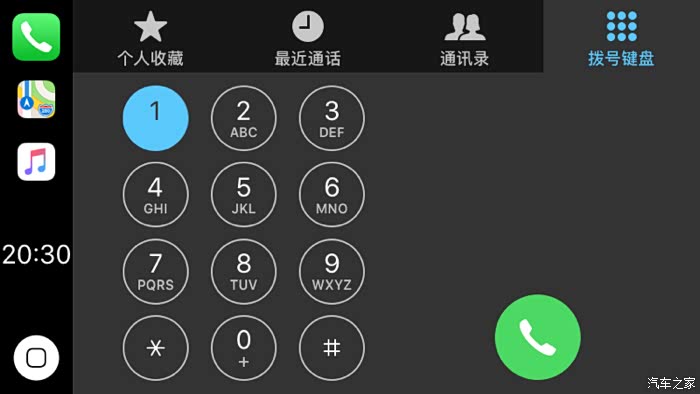 拨号,由于是车载使用,进入电话默认是启动Siri,靠语音指示被叫方,当然也可以进通讯录和最近通话选,手动输入号码也可以,只不过不是触屏,相对比较痛苦。