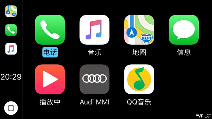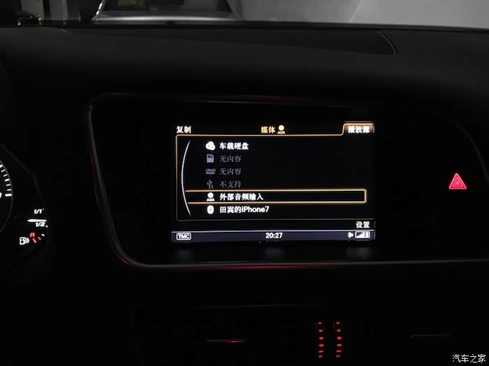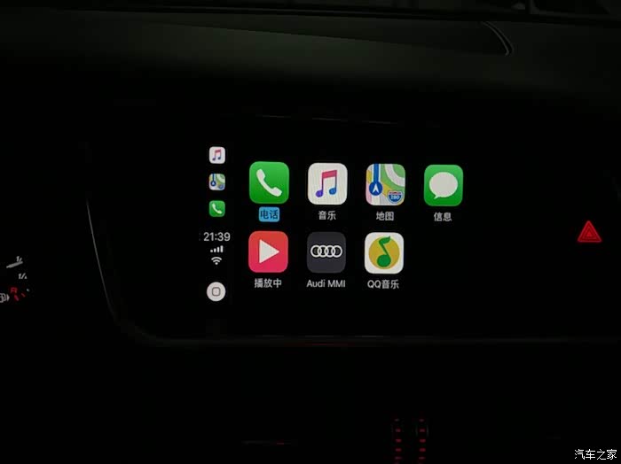 我的MMI默认没有AUX输入,自己在绿屏界面开启,后装CarPlay通过AUX线路将音频传入MMI再放出声音,因此平时要开到AUX才能有声音,不过其他通道依然可以正常播放音乐。