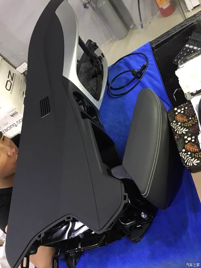 拆下地台外壳和扶手箱,原本计划加装一个USB口,无奈扶手箱电源边上是冷热杯架的模块,没有空间装,而且考虑要打洞,还是决定把原来的电源拆了换成USB口。