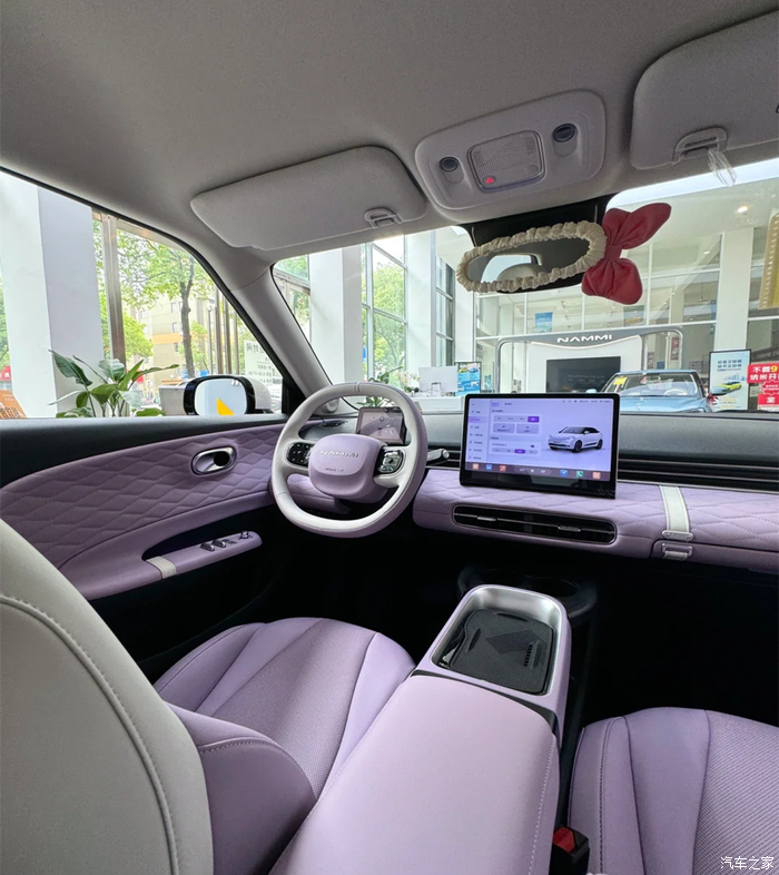 来到4s店,销售就热情地带我到了纳米01车前,白紫的拼色让我眼前一亮,这不就是我梦寐以求的多巴胺配色么!圆润的车身线条,有点奶凶奶凶的前脸大灯,可爱中又带着一点小俏皮,像是灵动的小猫一样,甚至还是无边框车门!