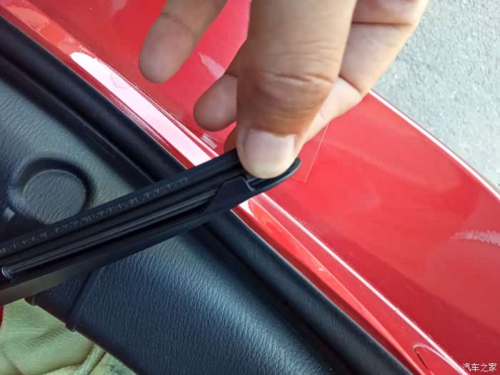 找到雨刷器胶条带这个卡口,梢头的 一面