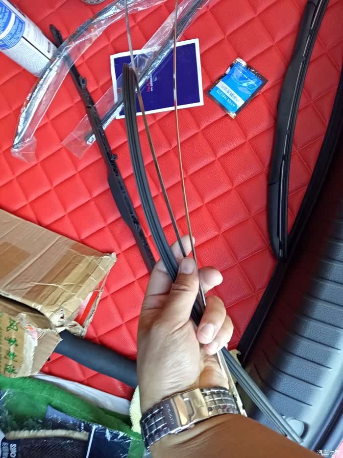 小红提车一年~正值雨季,雨刷胶条已经刷不干净了~原厂总成太贵了~!副厂的装上去松松垮垮的!!而且原厂与刷的骨架和钢片质量相当的好,不是副厂的可以比得了的!那就保留原厂骨架,单独换胶条!直接某宝淘了副小红的尺寸的胶条 开整!