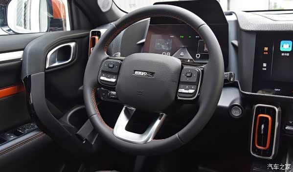 从外观上看,大狗具备传统硬派越野风格,但是在前脸采用了圆润的大灯组设计,并且加入了复古元素,配合三横式的进气隔栏,将整车的辨识度提升了不少。但在内饰上大狗给人一种刚柔并济的感觉,最显眼的当然是全液晶仪表盘和大尺寸的中控液晶屏,迎合了当下年轻人对审美智能的需求。