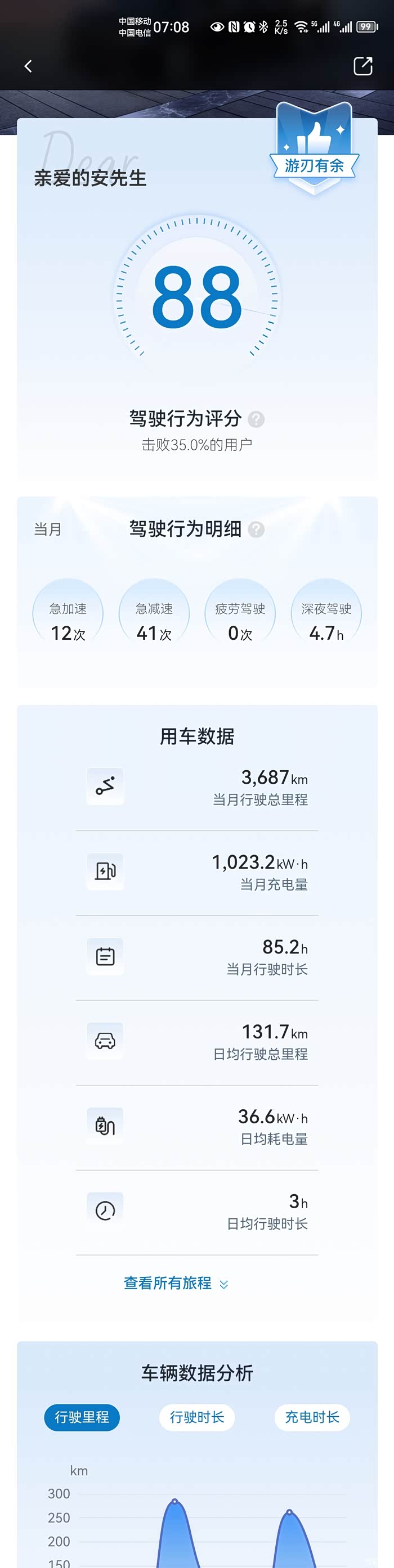3687km充电1023.2度电,算下来百公里27度。总电费不到1000元!香不香