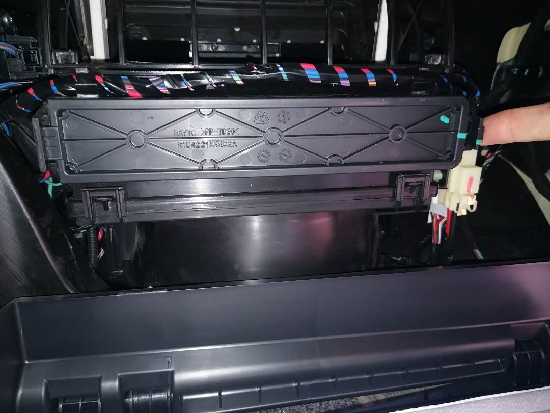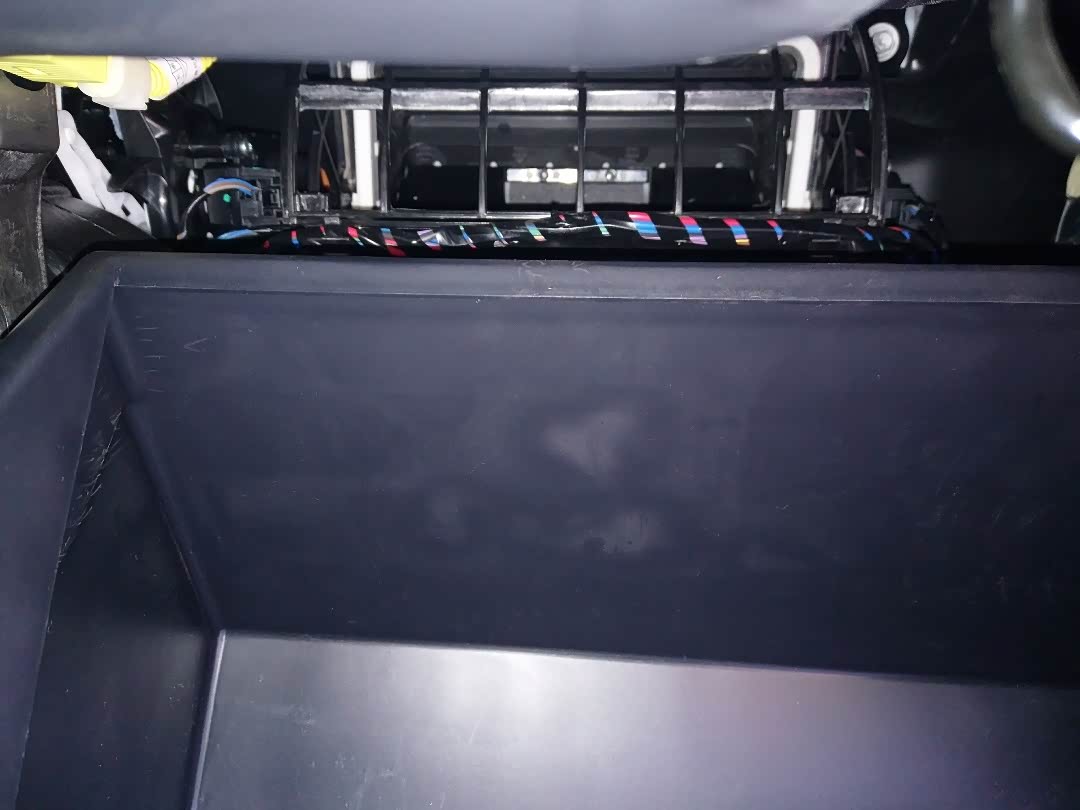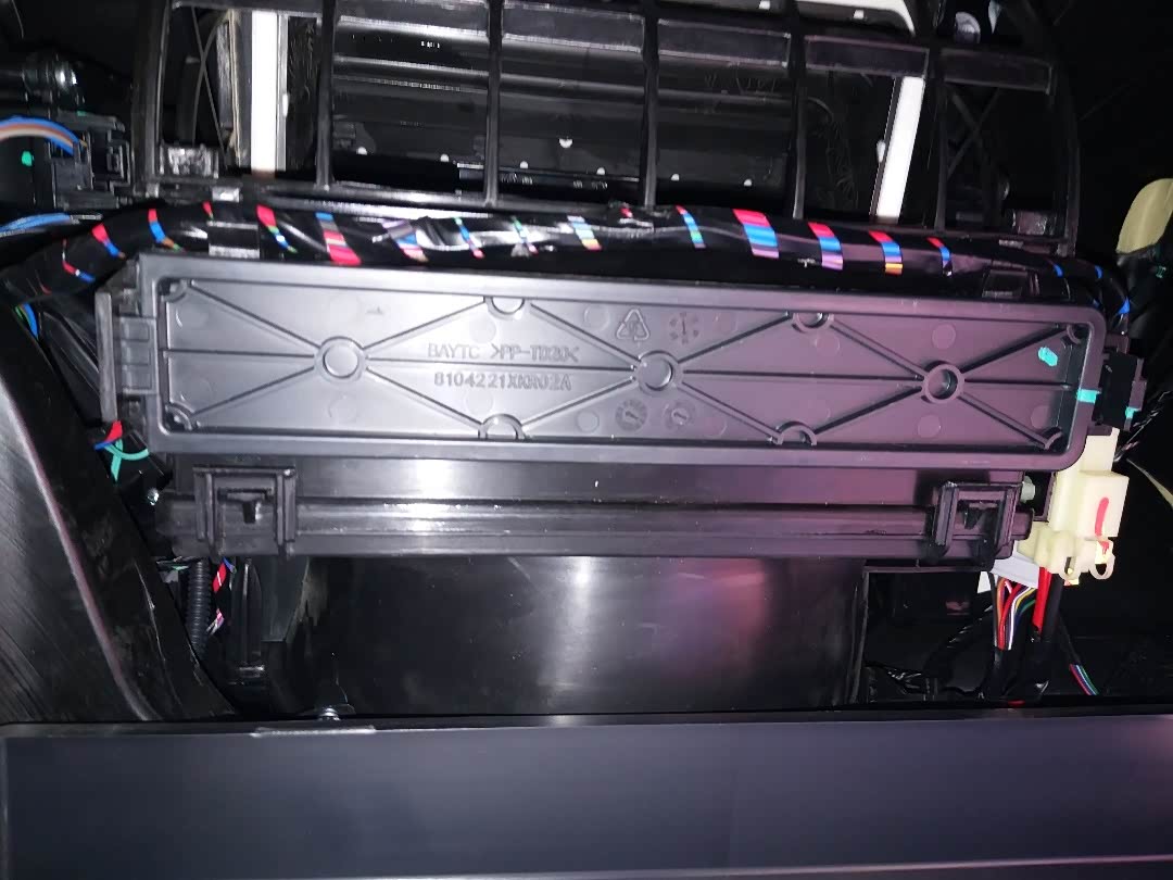 我是先把左边按扣向内侧用力按,然后就可以出来,顶着侧壁。这时,把右侧侧壁润滑好,双手压着手套箱左侧,猛一下往下推,硬生生把右侧的绊扣带出来。