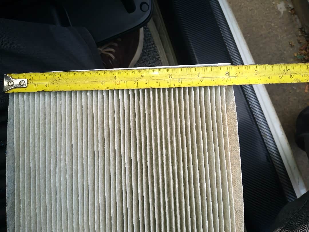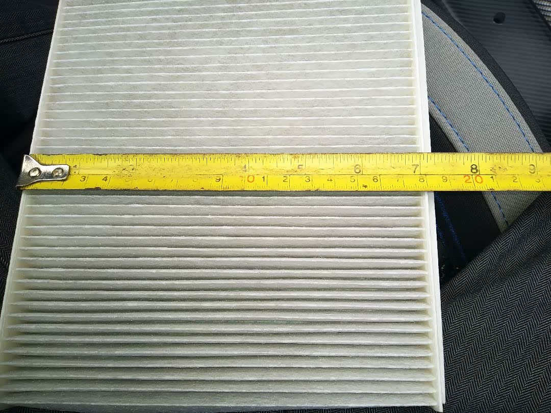 量过尺寸,各位车友知道怎么自己买空调滤芯了吧。4s稍微有点贵,因为这个滤芯太简陋了,你好歹包个边,弄厚点,我58元买一个也心甘情愿,这个30元一个我都嫌贵。土豪请略过这一段。