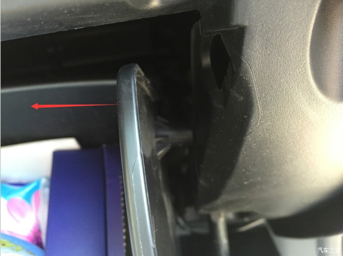 然后将手套箱的上部往内挤,另外一边也是一样,然后手套箱就可以放倒了