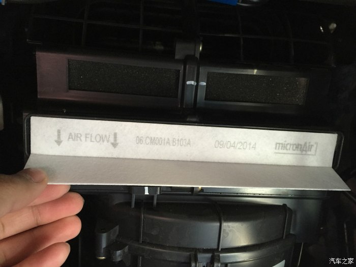 拆掉挡板后,看到原厂的空调滤芯,往外拉~