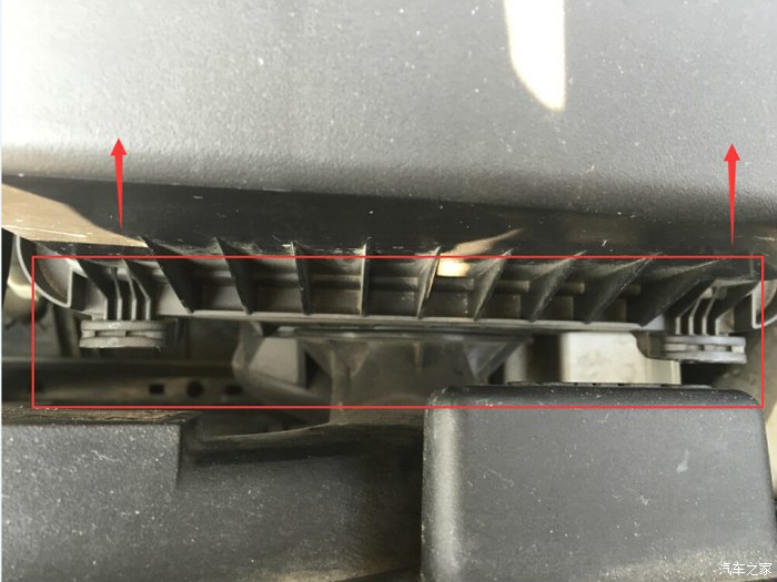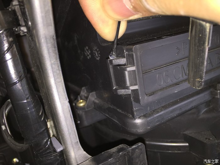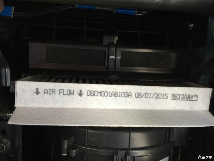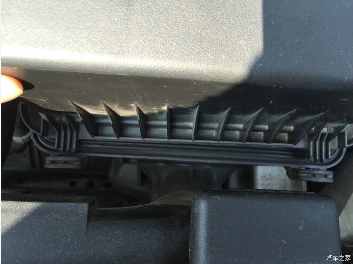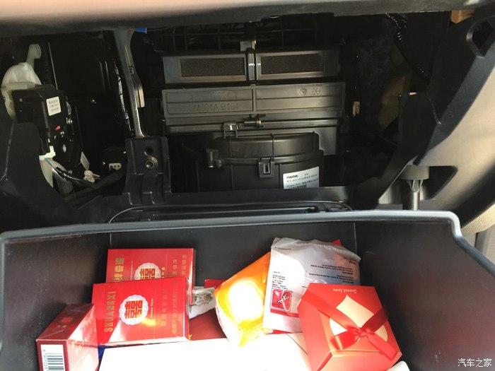 卸完手套箱就看到空调滤芯所在位置(中间有英文字母)