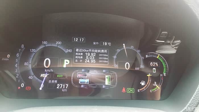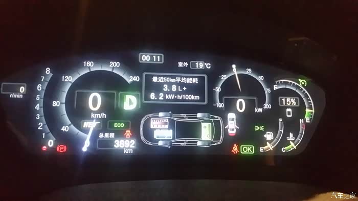这是回到家时的数据,中途加了一次油,费用210元。此时已是7号凌晨。油量还有20%左右,电量15%。总里程表显示3892公里。全部旅程3892-2162=1730公里,加油240+190+210=640元。油耗640/1730=36.9元/百公里。中间充了一次电未计入。
