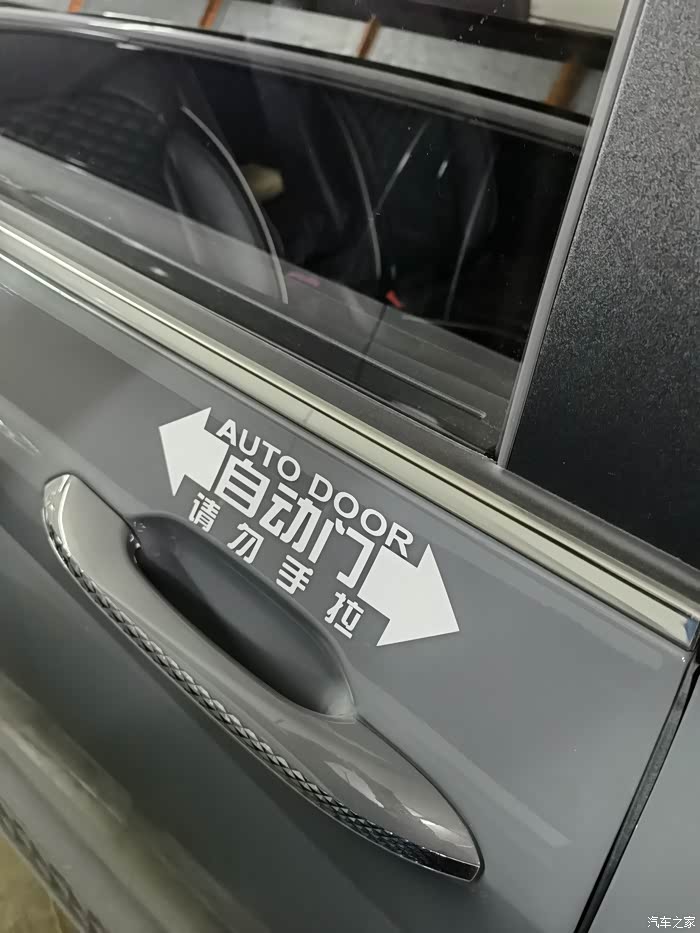 自动门上贴了提示标语。