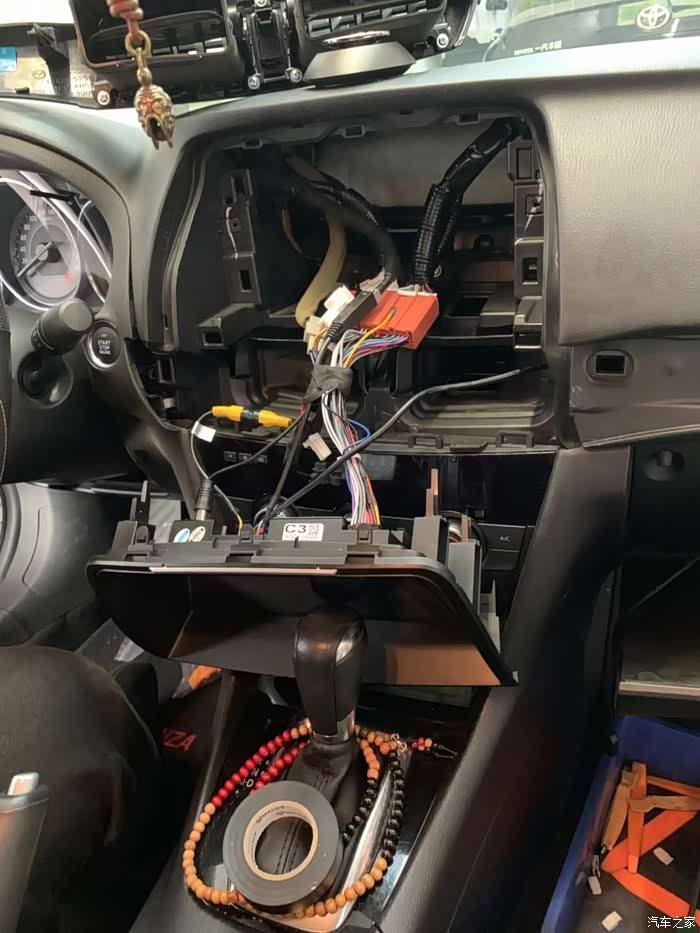 买完快乐水会来,装饰条已经拆下来了。接下来的步骤就快了很多。不一会原厂车机就出来了。