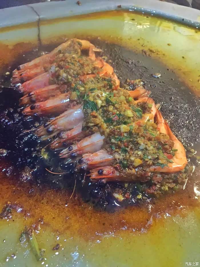 火焰芙蓉虾熟了以后的样子,每个虾都开背去虾线,看的惊心,吃的放心。