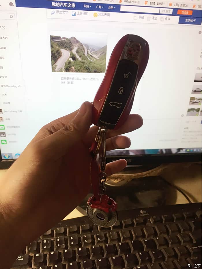 还有钥匙认证,差点忘了。马云加买个红色壳子换上去了,效果特别棒,骚气的很。哈哈哈。还有刹车盘的钥匙扣,可以转动,很有意思。