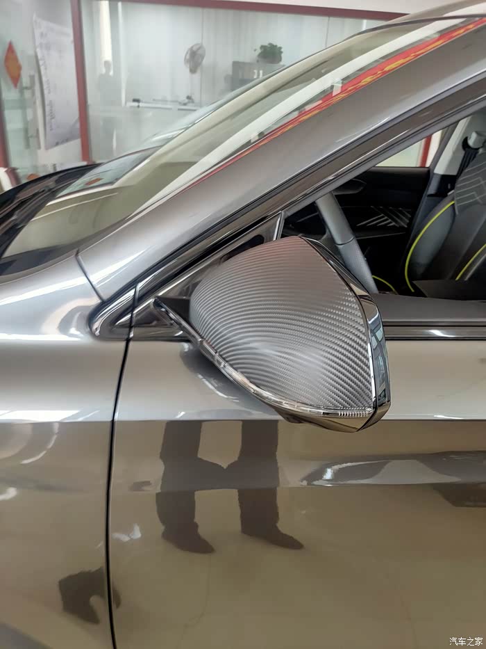 连后视镜也谈的是碳纤维饰设计。很多后视镜还是和车身颜色,比如黑色或白色,看起来非常的普通。碳纤维设计后,立马看起来非常的亮眼。