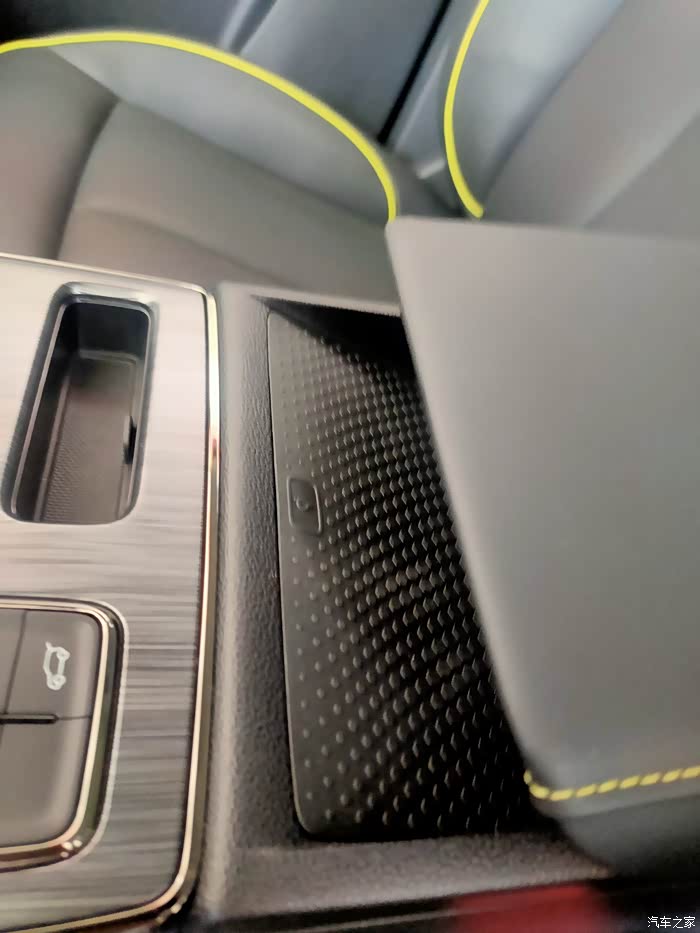 这一款是个高配车型,前排配备了手机无线充电 充电速度也是比较可以的。不仅可以充电,这也是一个不错的手机储物盒
