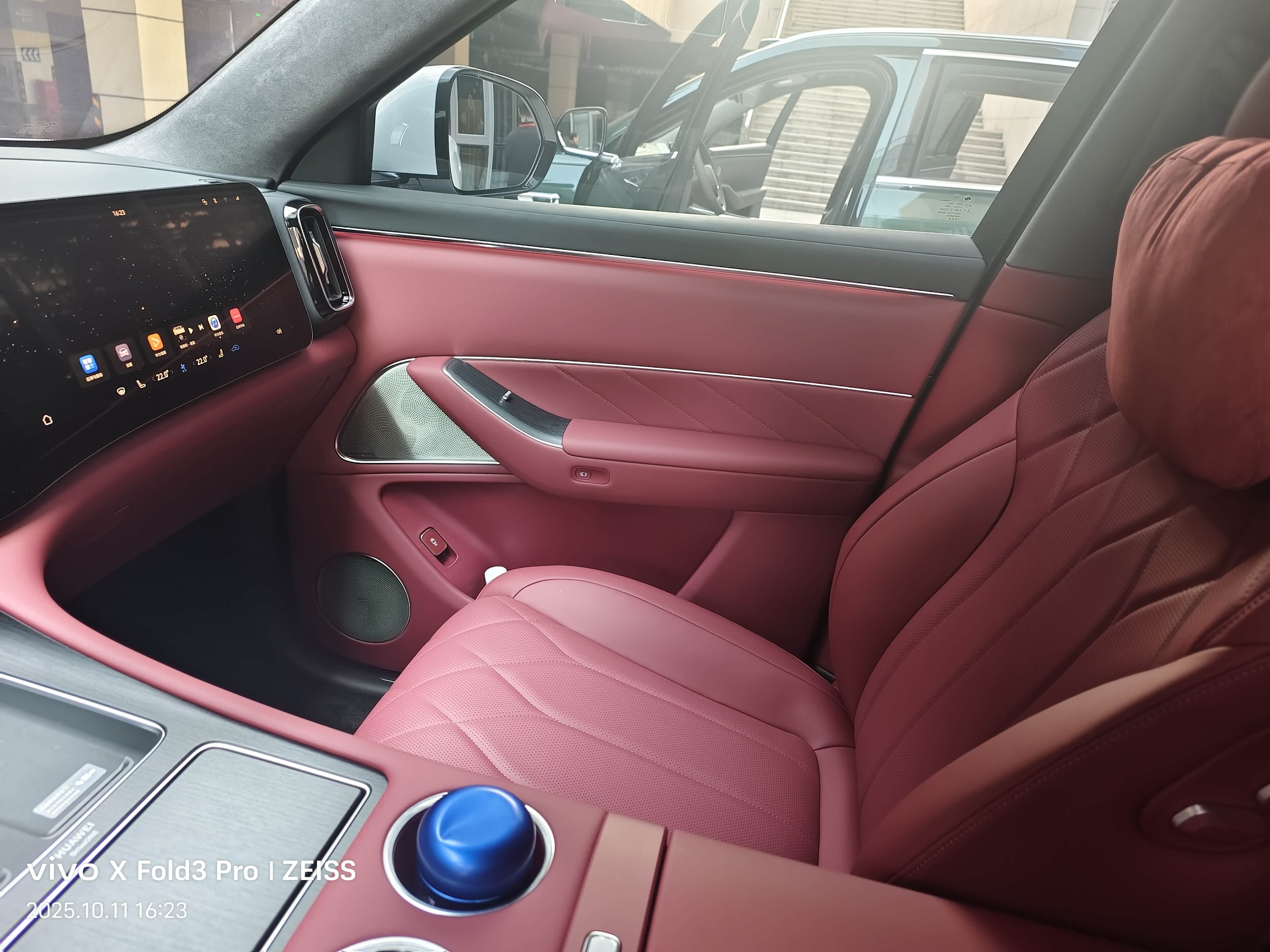 步入车内,酒红色真皮座舱瞬间俘获感官——菱形缝线工艺的座椅、细腻的车门内饰板,每一处皮革触感都传递着越级豪华;后排独立座椅配备丰富调节功能,搭配可升降的隐私屏,营造出媲美豪华商务舱的私密空间,无论是商务洽谈还是家庭出行,都能在方寸之间尽享尊崇。