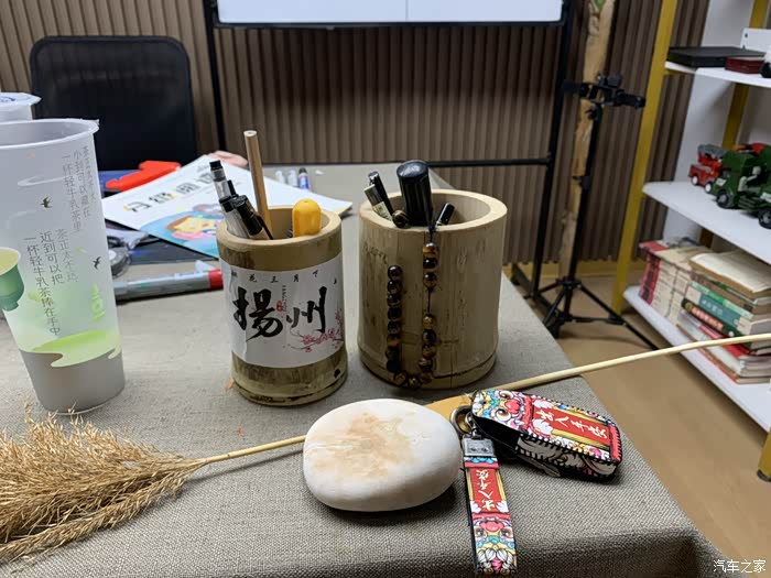 扬州和北京的竹筒,日照海边的鹅卵石,济南黄河边的芦苇,还有泰安的石头,没摆在上面,这都是大白这半年时间里美好旅途的见证物