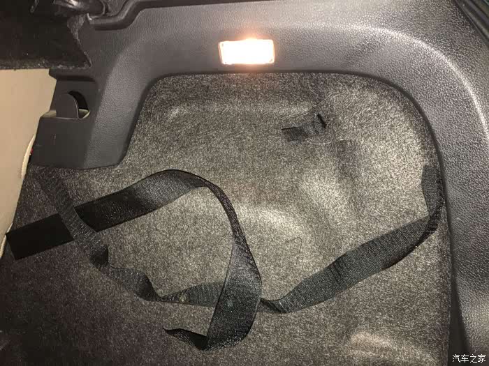打开后备箱,将右侧的衬板掏掉。方法是先将中间的魔术贴撕开,然后手进去就可以衬板掏掉。