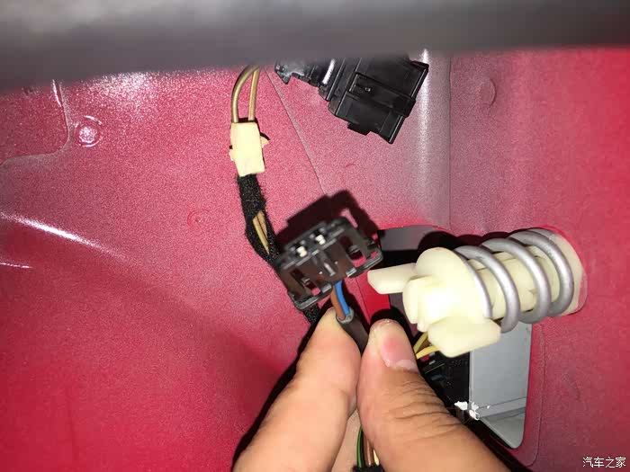 剩下的就简单了,按照之前的步骤,反过来。接电机电源,扣紧电机橡皮塞,扣上电机,套上橡皮套、油箱盖板及导水管,拧上螺丝,最后将后备箱内衬板装好就可以了。
