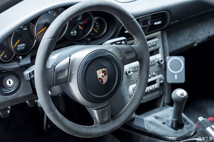 这台997GT3,的确已经有了一定的岁月痕迹,不过由于打理得宜,全黑内饰并不容易有种换新的感觉,现在模样已经非常不错了。