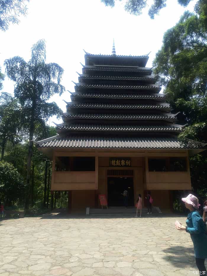 大龙潭风景区的侗寨鼓楼,景区内还有壮寨、苗寨、瑶寨。