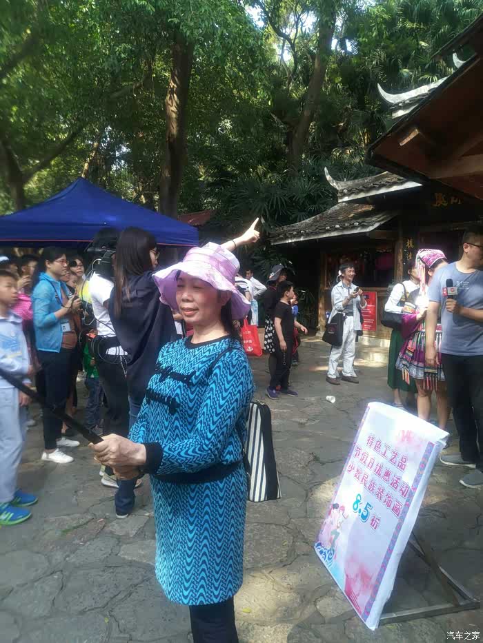 大批游人在鱼峰山,人山人海,在听唱山歌。