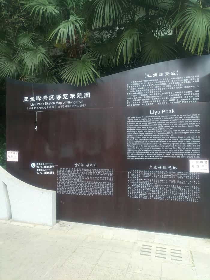 鱼峰山脚下的景点指示牌。