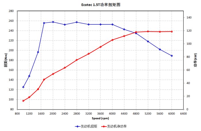 全新1.5T直喷涡轮增压发动机功率扭矩图