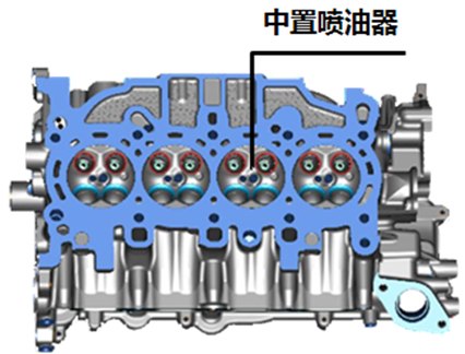缸顶中置喷油嘴喷油嘴巧妙的设计在气缸顶部的中央,使燃油以相等的距离喷进气缸,这样便可使燃油雾化更均匀,提高燃烧效率。