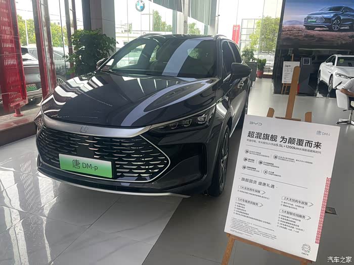 因为要二胎 所以想换一辆大SUV 看到比亚迪新能源最近销量非常好 就跟老婆到我们当地的4S店去看了一下 一进门就看到这款唐DMp 颜值非常不错 我跟老婆都比较喜欢