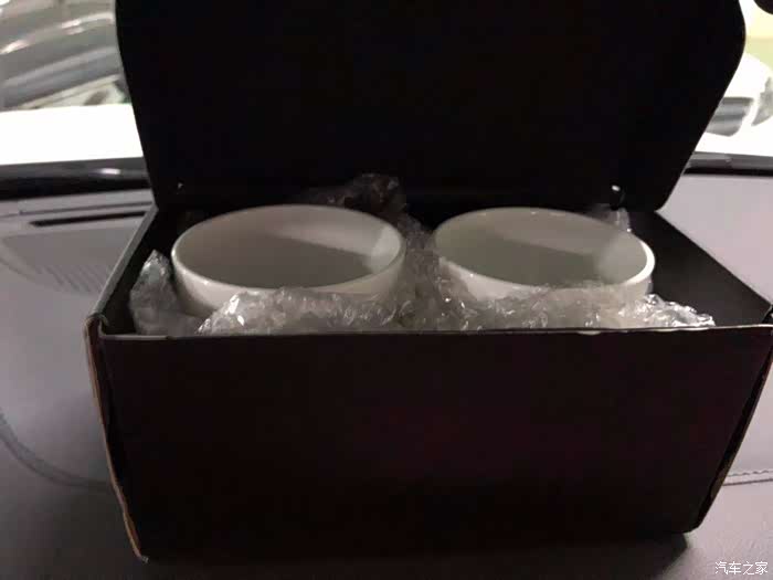 打开盒子,里面连个咖啡杯,边上环绕着气泡膜防止碎裂