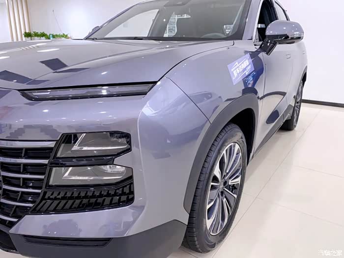 捷途大圣从外观到内饰的设计还是用了很多新能源、新势力车型的设计元素。前脸部分,分体式大灯的上半部分是日间行车灯,兼容了转向灯。往下是正儿八经的的近光灯、远光灯一体的。最下面是一个近光灯的补充、以及一个转向辅助。这个车的中网,很容易让我想到中世纪铠甲,尤其是腹部那片铠甲。造型从整体看是立体、饱满的。