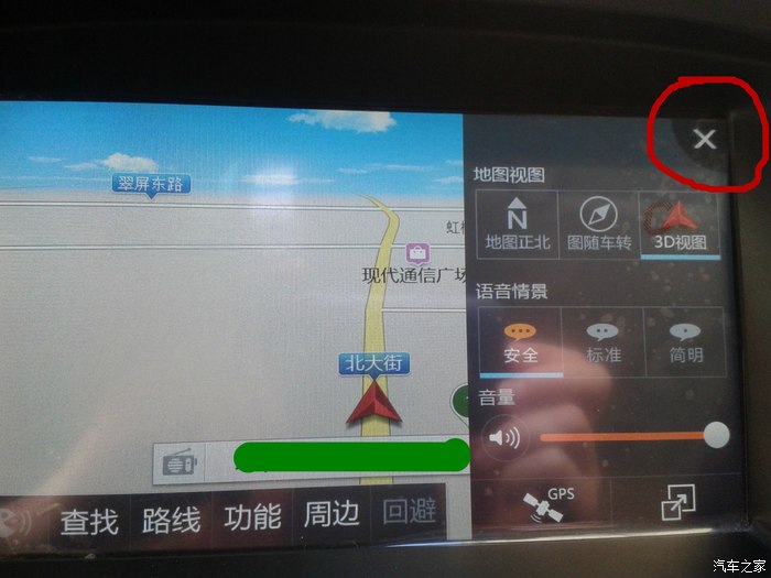 还有一个添加电子眼的功能,假如走到了一个红灯路口,而导航没有报出来,这时候你可以如下操作添加电子眼:点击右上角红圈处(那个其实是搜到的卫星个数),