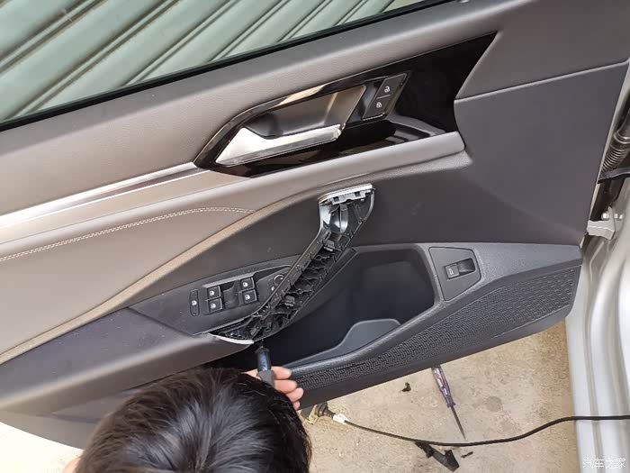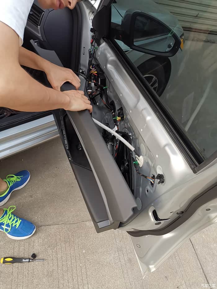 22、安装上去后门板,这样后门就完工了,另一边的后门一样方法,这里我要着重说下后门!!速腾后门简配过,关门状态下后门门灯会有微电流,门灯会一闪一闪,请教过店家,店家说这事正常现象,速腾都这样,失望😞