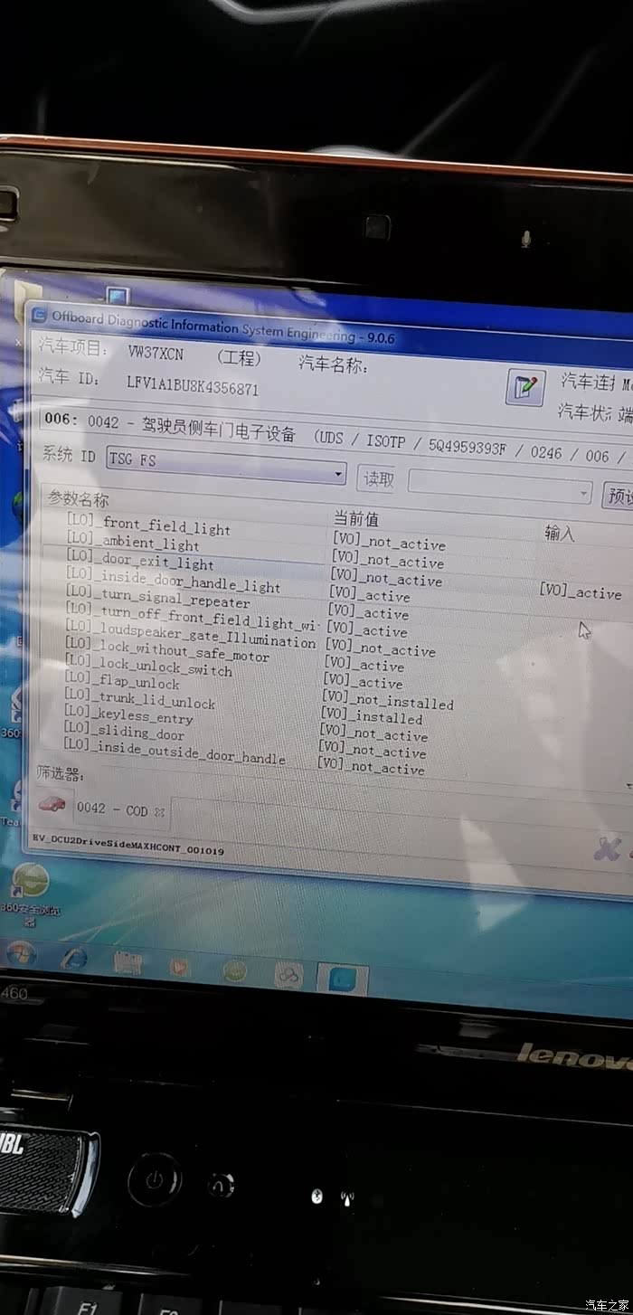 1、刷隐藏,用5054把42和52的门灯开通,原来是出于关闭状态,要把它们开通,42是主驾驶门,52是副驾驶门