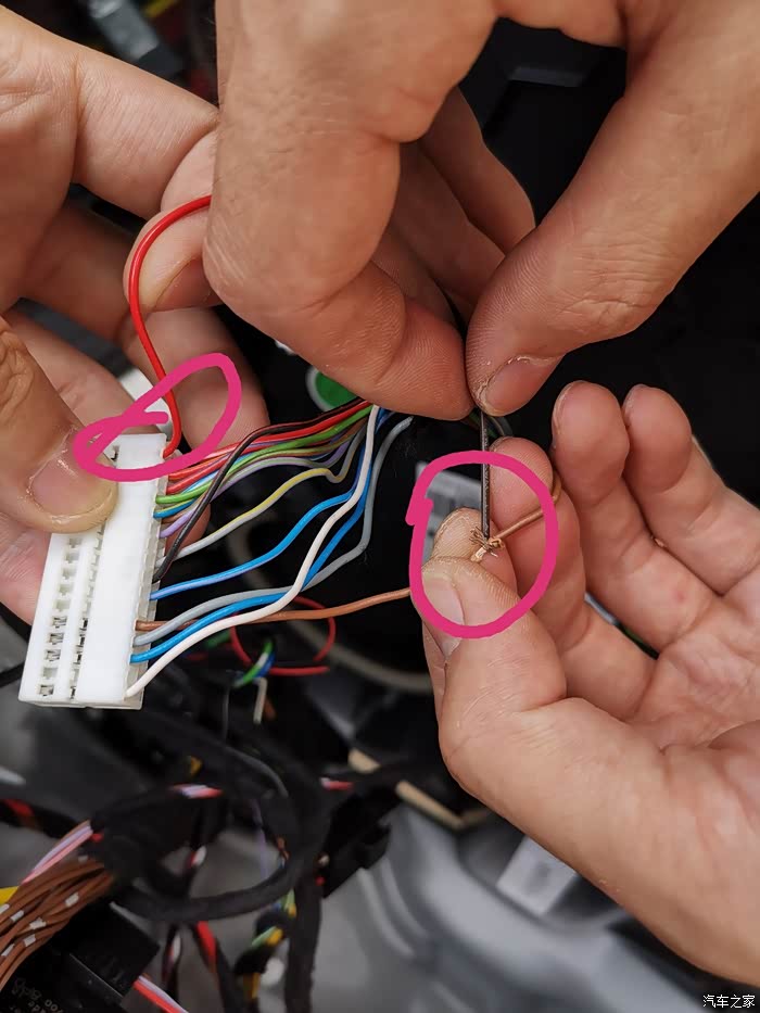 10、确定触角,我已经帮大家确定好了,不用谢我,5号和16号触角就是要接的,注意5号原来有线,需要一根线接到5号这根线上,16号原来没有触角,将门灯线一条线插入其中(不分正负极)
