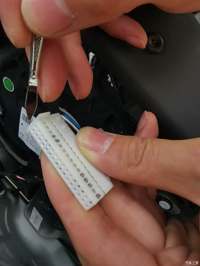9、拿下蓝色外壳,可以看到里面的触角,现在难题来了,到底那2根才是门灯要接的呢?莫慌下面继续