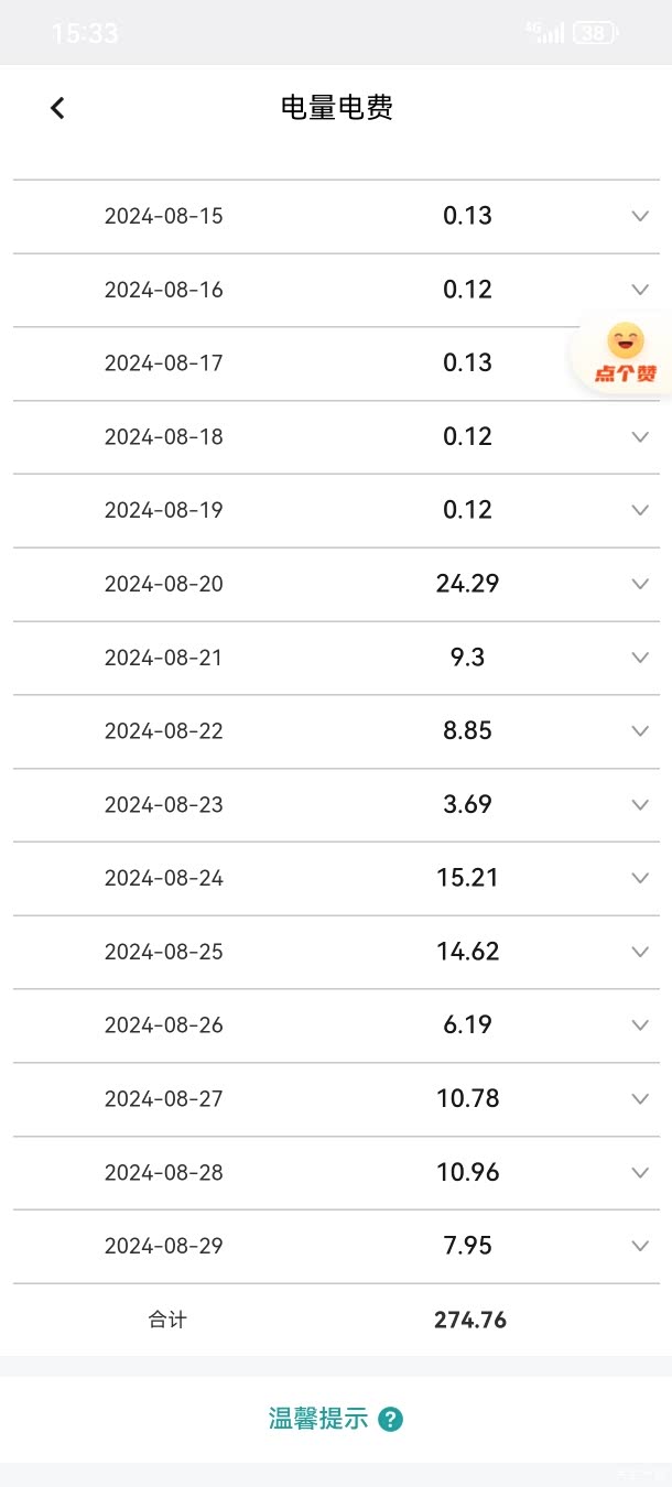 下面给大家分享一下我2024年1-8月的电费账单详情,大家的电费支出情况怎么样呢?