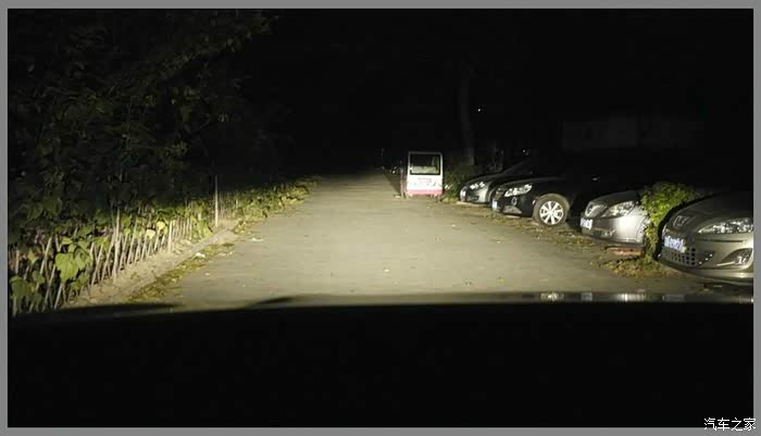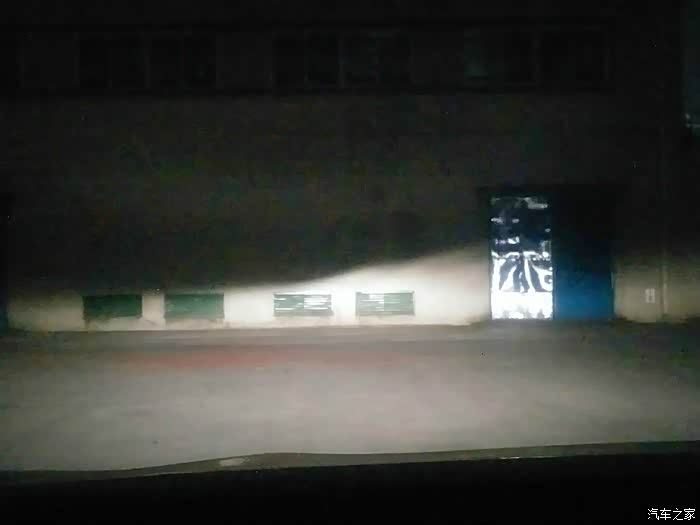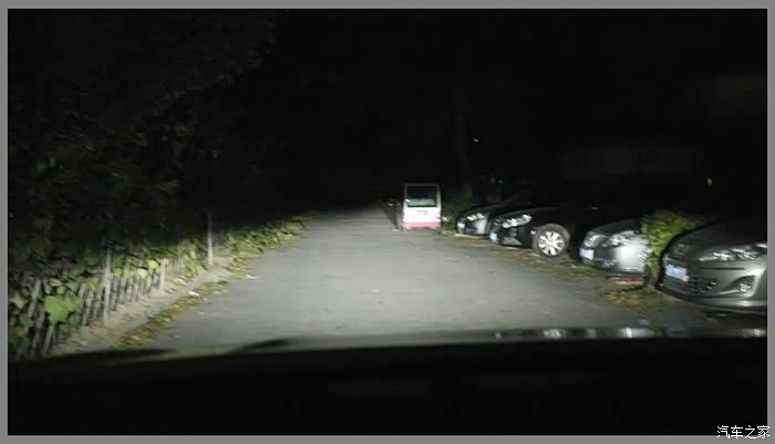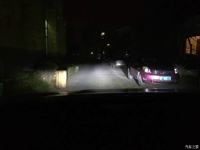 此图是雨木可把大灯高度调节(驾驶舱内)调在0位,把发动机舱内的调节螺丝逆时针方向旋2圈(调高)后,开灯照射路面,个人感觉比原车好很多,如图近光