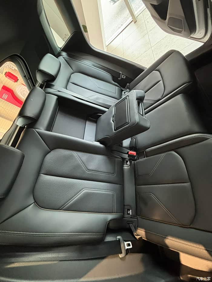 后排座椅的话是正常的设计,然后会有一个中间的扶手箱,如果只做两个人的话,把扶手箱放下来就会更宽敞一点