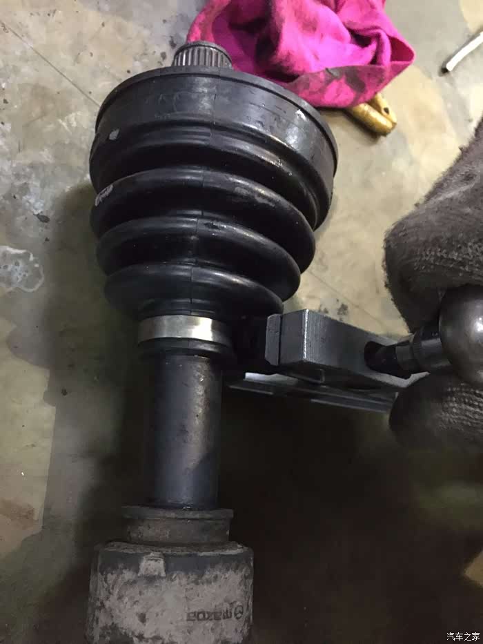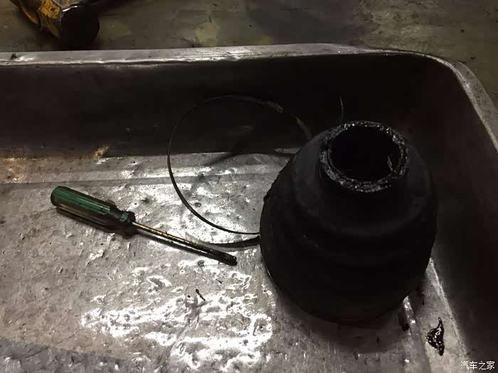 新的防尘套进行安装,我搞了这么久,就是为了换这一个小小的防尘套,安装防尘套的卡子,必须用专用工具进行上紧。