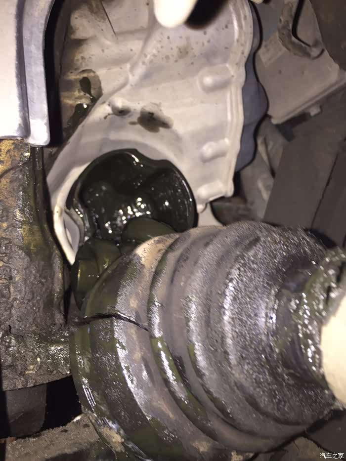 漏油的真凶找到了,半轴的内球笼套上面原来裂了一道很大的口子。